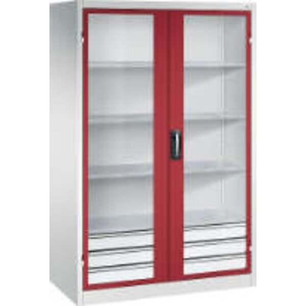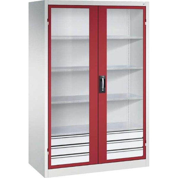 -Schwerlastschrank, mit Flügeltüren und Schubladenblock unten, RAL 7035/3003 Diese Schwerlastschränke bestehen aus einer langlebigen und stabilen Stahlblechkonstruktion.