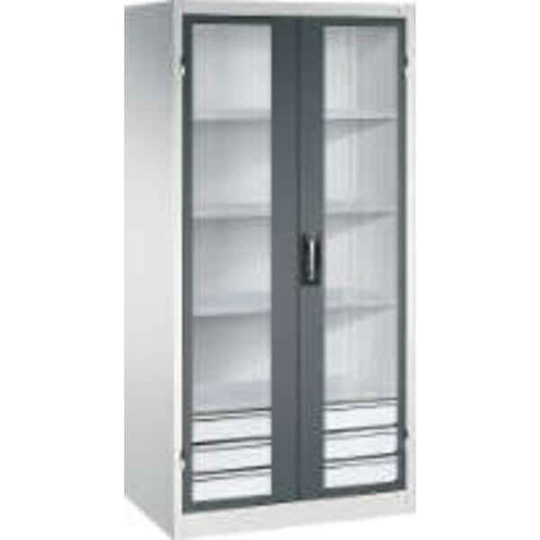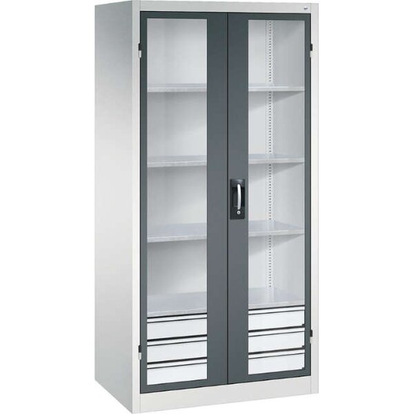 -Schwerlastschrank, mit Flügeltüren und Schubladenblock unten, RAL 7035/7016 Diese Schwerlastschränke bestehen aus einer langlebigen und stabilen Stahlblechkonstruktion.