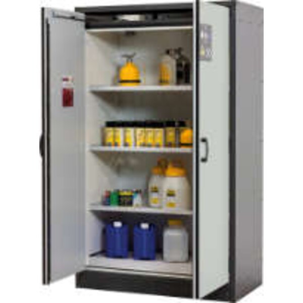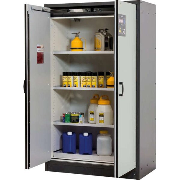 -Sicherheitsschrank Q-CLASSIC-30, RAL 7035 Für die sichere Lagerung von Gefahrstoffen in Arbeitsräumen gemäß DIN EN 14470-1 und TRGS 510 ist dieser Sicherheitsschrank geeignet.