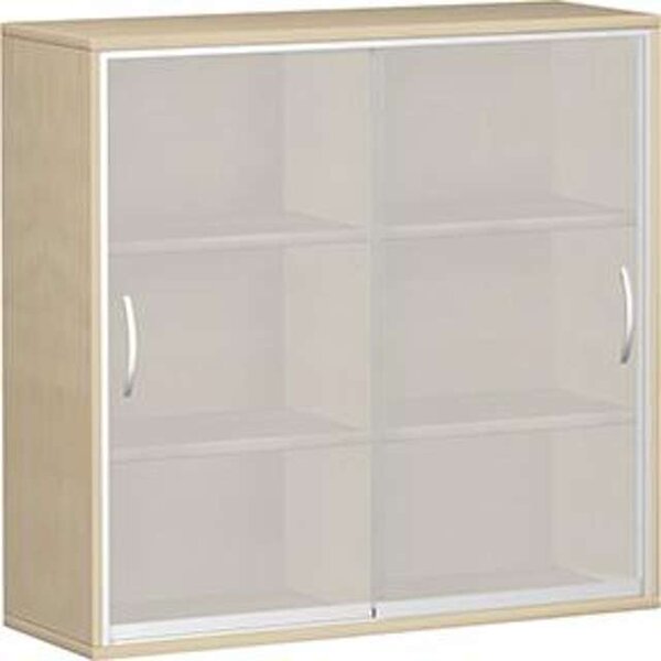 -Glasschiebetürenschrank Diese Büromöbelserie lässt sich beliebig kombinieren und bietet variable Stauraumlösungen. Der Glasschiebetürschrank mit Mittelseite hat 4 Fachböden und 3 Ordnerhöhen.