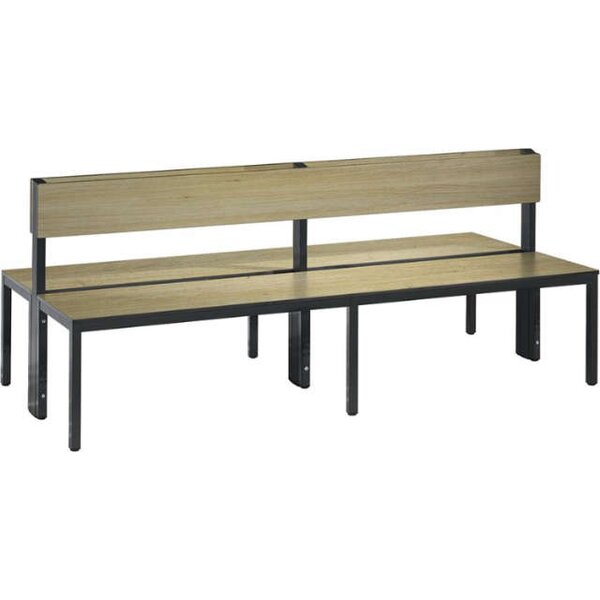 -Doppelseitige Sitzbank, mit Rückenlehne, ohne Schuhrost Diese Sitzbänke verfügen über eine stabile Vierkantrohr-Konstruktion aus Stahl (30x30 mm).