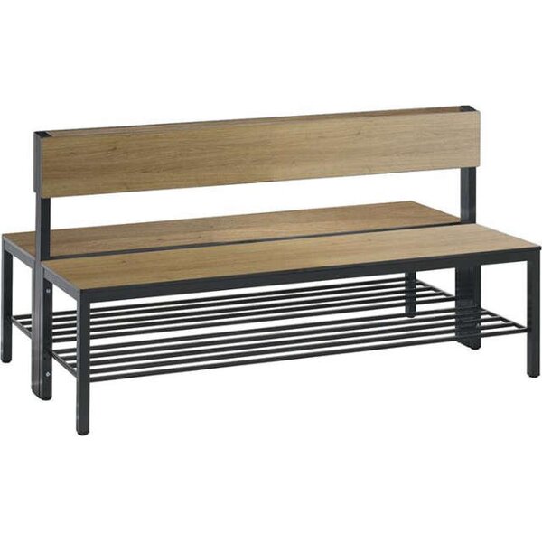 -Doppelseitige Sitzbank, mit Rückenlehne und Schuhrost Diese Sitzbänke verfügen über eine stabile Vierkantrohr-Konstruktion aus Stahl (30x30 mm).