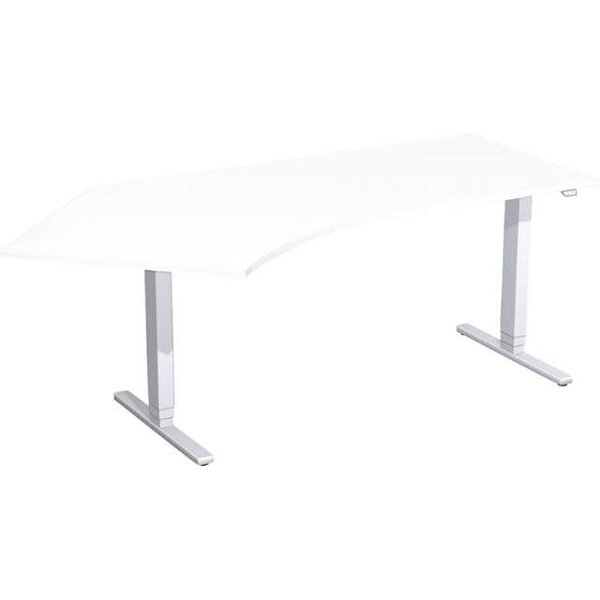-Schreibtisch Typ Flex, links, HxBxT: 650–1250x2166x800/1130 mm Die höhenverstellbaren Schreibtische mit der markanten T-Fuß-Optik verfügen über modernste Technik. Durch die elektrische, stufenlose Höhenverstellbarkeit setzt das Arbeitstischprogramm neue Maßstäbe für flexibles Arbeiten und mehr Leichtigkeit im Büro.