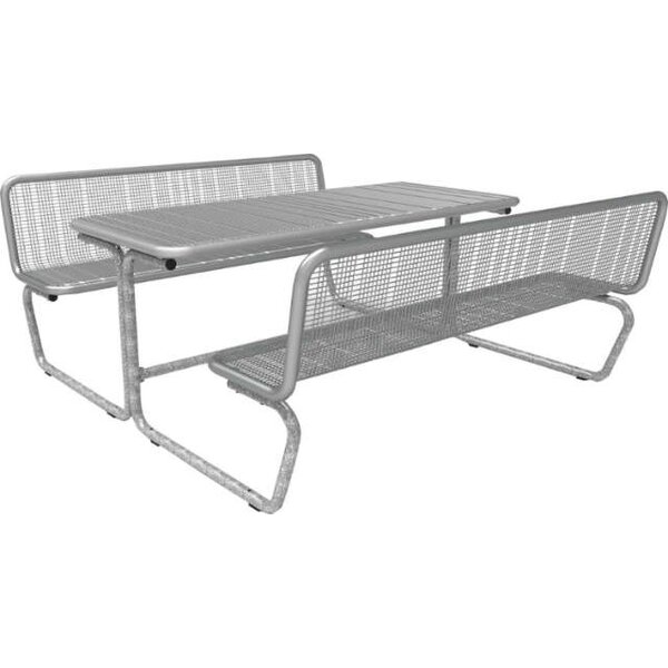 Bank-Tisch-Kombination NEUTRALE PRODUKTLINIE, PALMA, Drahtgitter Nutzbreite 1770mm RAL 9006 mit RückenLehne