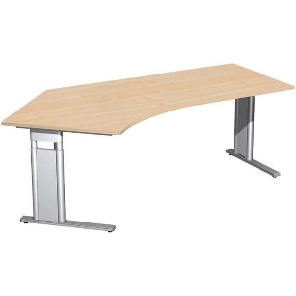-Schreibtisch C-Fuß "Pro", 680–820x2166x800/1130 mm (135° links) Der universelle Schreibtisch mit zwei C-Fuß-Säulen und den unterschiedlichen Plattenformen kann sowohl als Einzeltisch wie auch als Teamarbeitsplatz eingesetzt werden.
