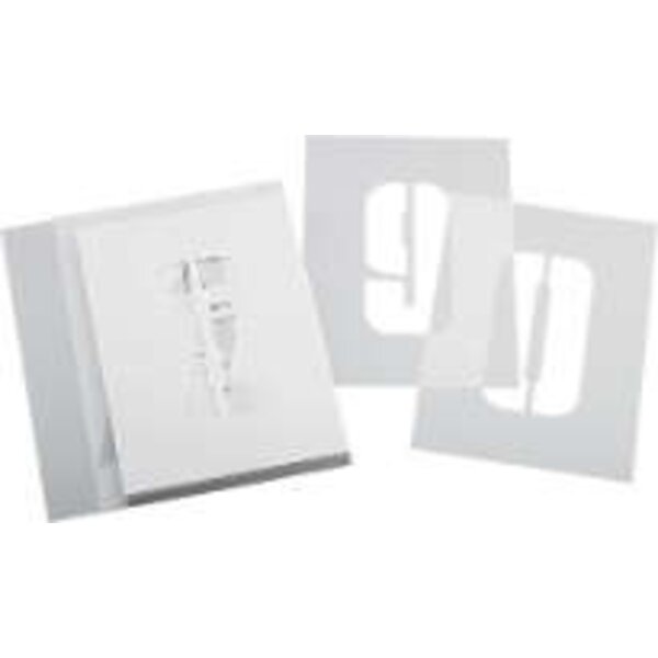 -Schablonensatz für Bodenmarkierung Dieser Schablonensatz besteht aus 59 Ziffern und Buchstaben, Pfeilkopf, Pfeilkörper (Gerade), Pfeilkörper (L-Form).