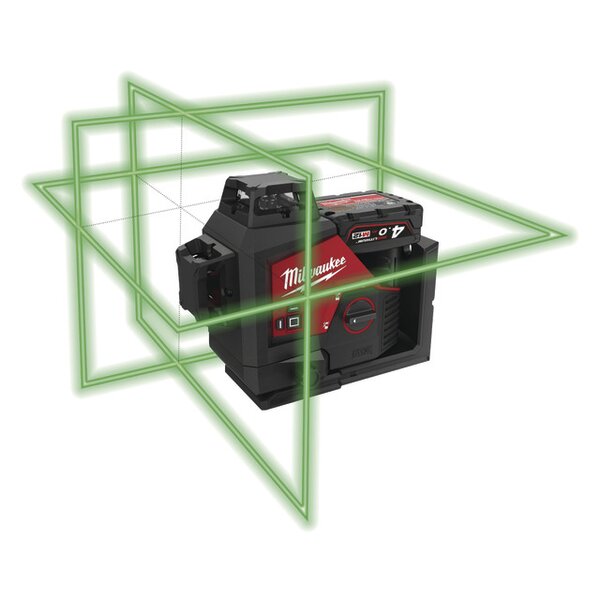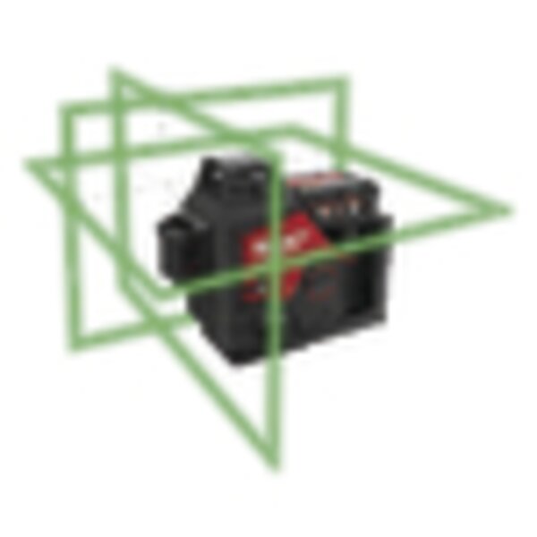 - der M12™ 3× 360° Akku-Kreuzlinienlaser bietet eine All-in-One-Funktionalität mit einer horizontalen und zwei vertikale Linien