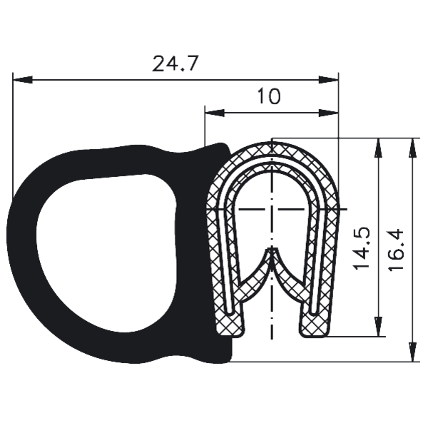 Kantenschutzprofil PVC/EPDM Klemmbereich 1,0 - 4,0 mm