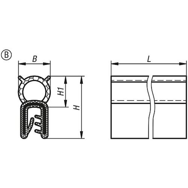 KANTENSCHUTZ-DICHTPROFIL 20000X11X22, FORM:B, EPDM SCHWARZ, KOMP:EPDM L=20 METER