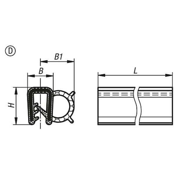 KANTENSCHUTZ-DICHTPROFIL 20000X9X13, FORM:D, EPDM SCHWARZ, KOMP:EPDM L=20 METER