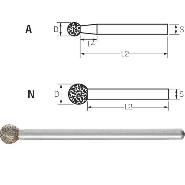 CBN-Schleifstift PFERD TOOLS, CBN Kugelform Korn B 126 mittel