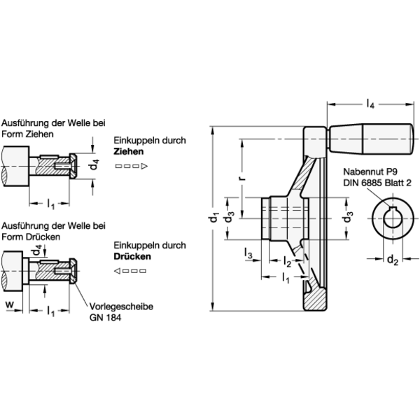 Der Einbau von Kupplungssätzen in andere Handradtypen ist grundsätzlich möglich.