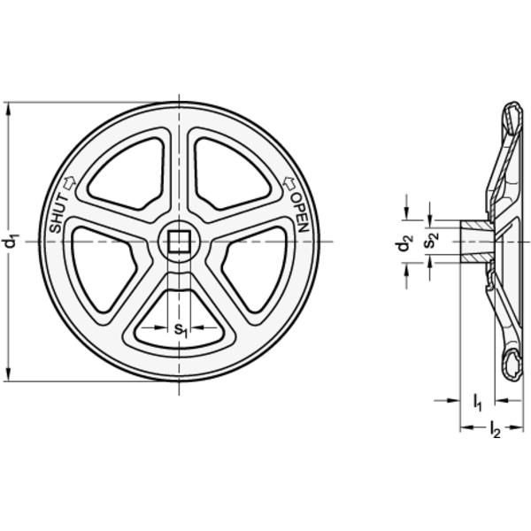 Der konische Nabenvierkant erlaubt eine einfache Montage mit festem Sitz. Aufgrund der geschlossenen Form werden Verletzungen bei der Bedienung durch scharfe Kanten vermieden. Die eingeprägte Beschriftung „SHUT“ und „OPEN“ hilft bei der sicheren und korrekten Bedienung von Armaturen.