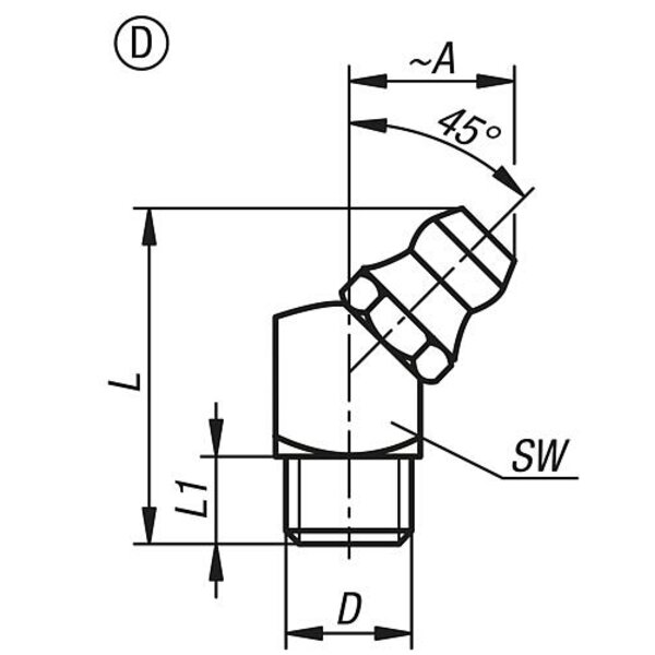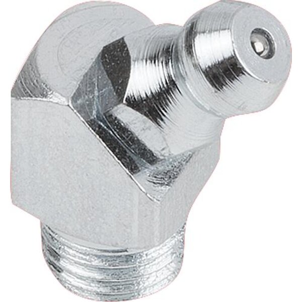 KEGELSCHMIERNIPPEL DIN71412, FORM:D ABGEWINKELT 45° M. 4-KANT, M10X1, L=20,5, STAHL GEHÄRTET UND VERZINKT