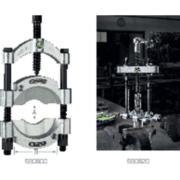 - bestehend aus Traverse, Druckspindel und zwei Verbindungs-Gewindebolzen, welche auf die Trennvorrichtung geschraubt werden und das gelöste Lager abziehen