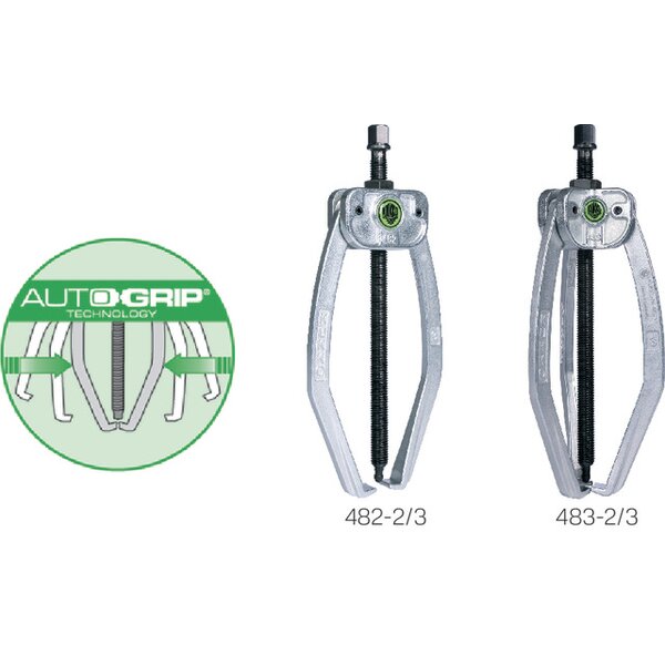 - komfortables zwei- und dreiarmiges Abzieherkonzept mit automatischer Selbstspannung
