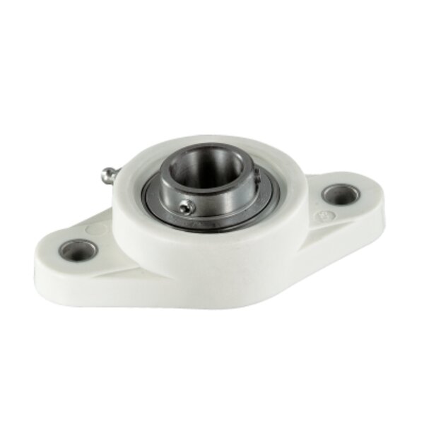 Thermoplastgehäuse,Lagereinsatz aus rostfreiem Stahl mitGewindestiften am Innenring,Dichtung mit Schleuderscheibe, lebensmitteltaugliches Fett