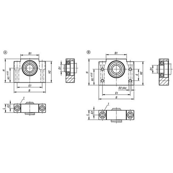 LOSLAGEREINHEIT TYP BF, BLOCKAUSFÜHRUNG GR.10, D1=8, FORM:B, STAHL SCHWARZ BR...
