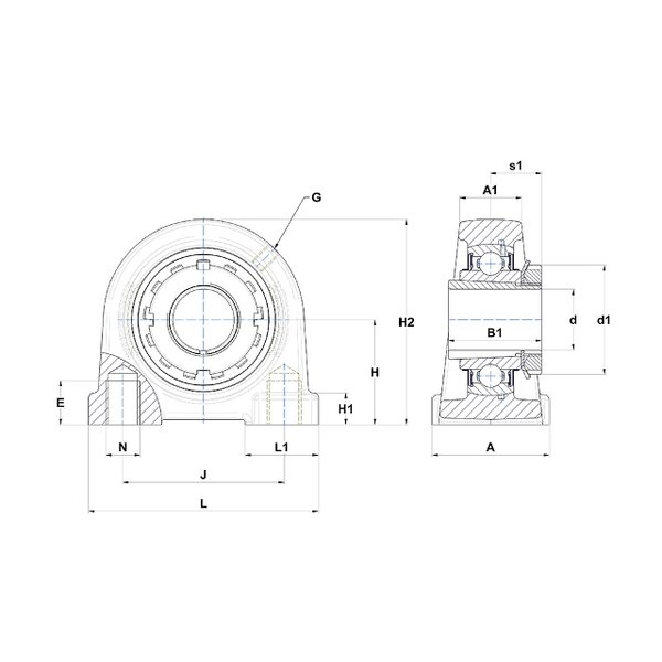Graugussgehäuse,Lagereinsatz mitSpannhülsenbefestigung,Dichtung mit Schleuderscheibe