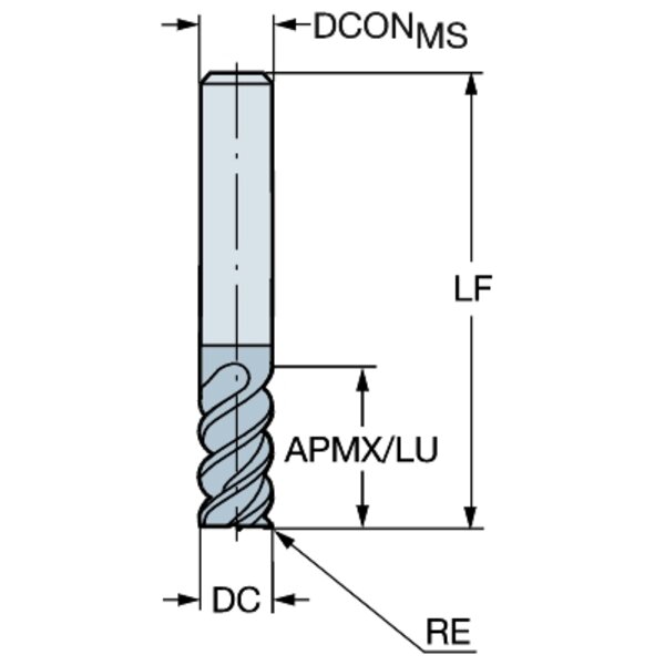 Schaftfräser eckige Form, mit Eckenradius, ohne Zentrumschneide - Metrische Ausführung