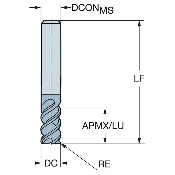 Schaftfräser eckige Form, mit Eckenradius und Zentrumscheide - Metrische Ausführung