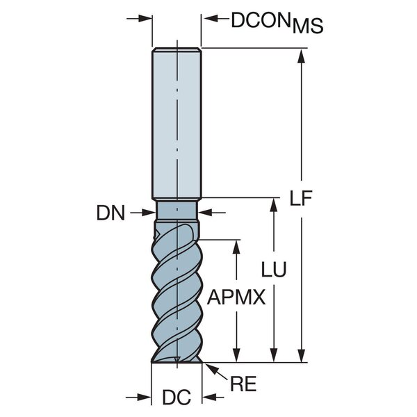 Schaftfräser eckige Form, mit Eckenradius und Zentrumscheide - Metrische Ausführung