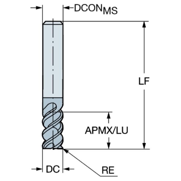 Schaftfräser eckige Form, mit Eckenradius, ohne Zentrumschneide - Zoll Ausführung