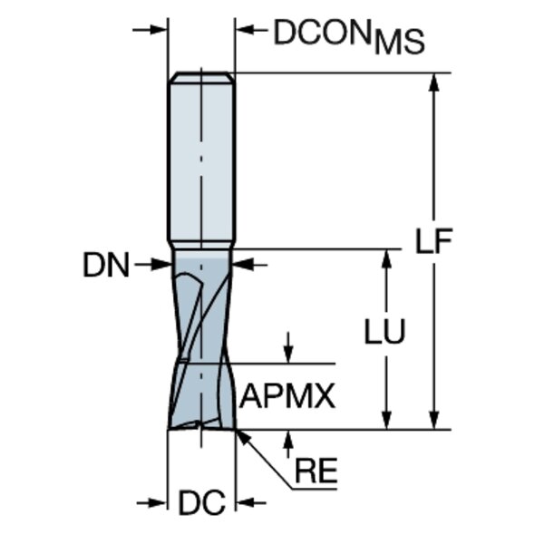 - Adapterschnittstelle Maschinenrichtung(ADINTMS): Cylindrical shank without clamping features -inch: 1/4