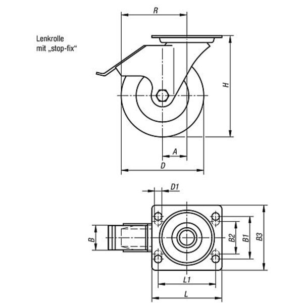 - ProduktartStahlblech-Lenkrolle m. STOP-FIX