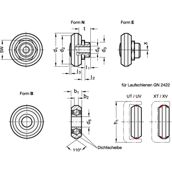 - Form: N - Normallaufrolle mit zentrischem Lagerzapfen