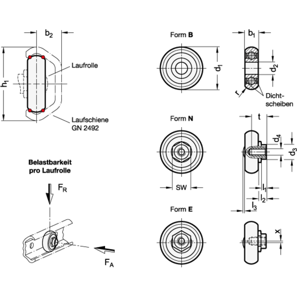 - Form: N - Normallaufrolle mit zentrischem Lagerzapfen