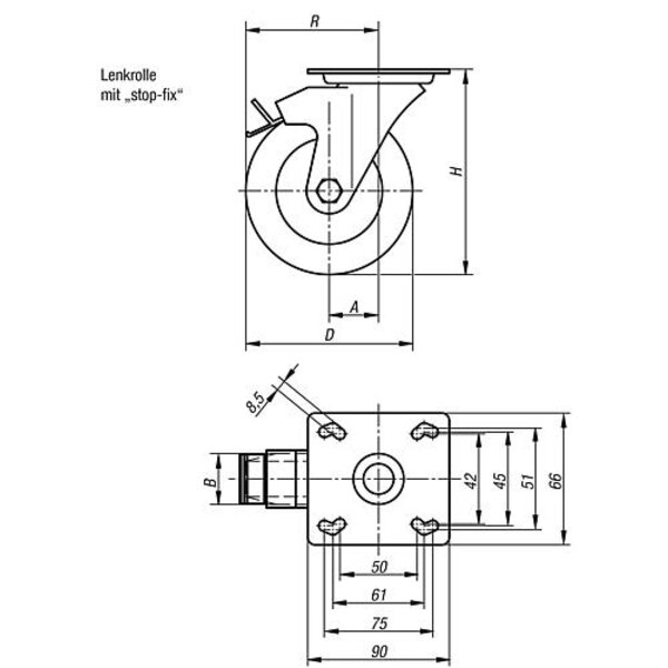 KIPP Lenkrolle Mit Feststellsys Stop-Fix