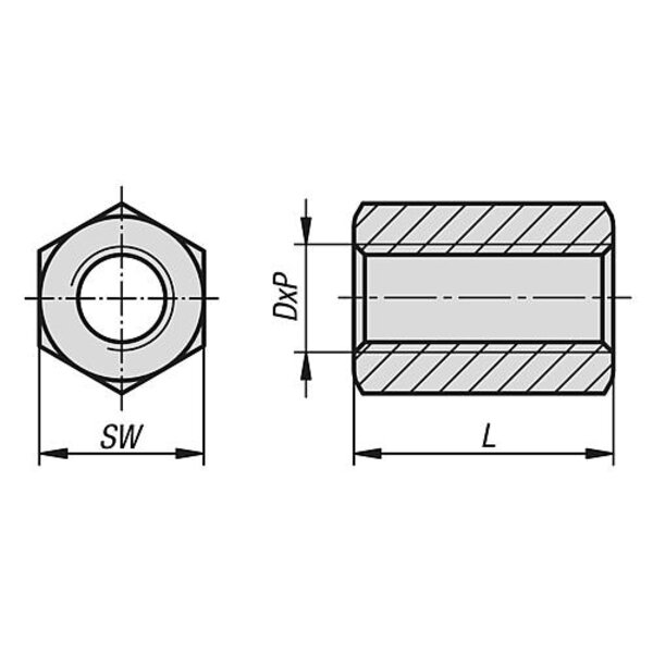 TRAPEZGEWINDEMUTTER RECHTSGEWINDE, EINGÄNGIG, TR 30X6, L=45, SW=46, EDELSTAHL