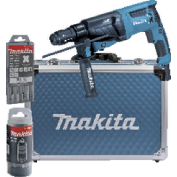 Zusatzhandgriff, Tiefenanschlag, SDS-plus-Wechselfutter, Schnellspannbohrfutter, Bohrerkassette und Handwerkerkoffer.