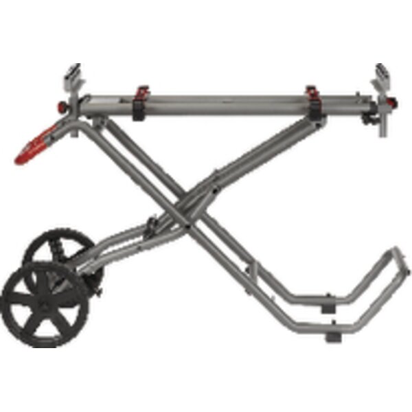 - durch die einfache Fußpedalsperre und einen Hebepunkt kann das Untergestell mit einer angebrachten Kapp- und Gehrungssäge schnell aufgebaut werden