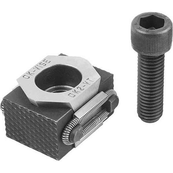 Wahlweise können die entsprechenden Keilspanner in einer Rasterbohrung oder T-Nut befestigt werden. Durch Eindrehen der Zylinderschraube DIN 912 bewegen sich die beiden Spannsegmente nach außen und drücken die Werkstücke gegen einen festen Anschlag.