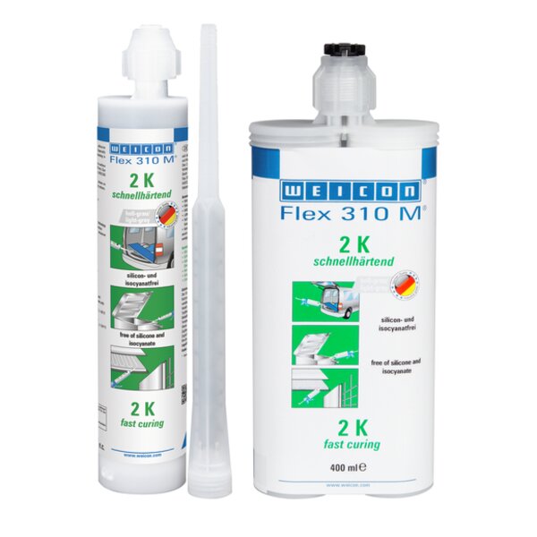 Der Kleb- und Dichtstoff ist ein haftstarkes 2-Komponenten-System auf Hybrid-Polymer-Basis, mit dem vollflächige Verklebungen größerer Teile möglich sind und mit dem Klebespalte bis zehn Millimeter überbrückt werden können. Flex 310 M 2 K eignet sich für Verklebungen von fast allen Werkstoffen, wie Metall und vielen Kunststoffen.