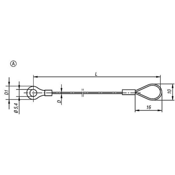 HALTESEIL FORM:A M.ÖSE U.QUETSCHKABELSCHUH L=200, EDELSTAHL, KUNSTSTOFFÜBERZUG TRANSPARENT,
