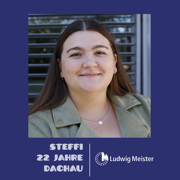 "Hi, ich bin Steffi, 22 Jahre alt und seit September 2022 als Auszubildende zur Handelsfachwirtin bei Ludwig Meister in der Zentrale Dachau."