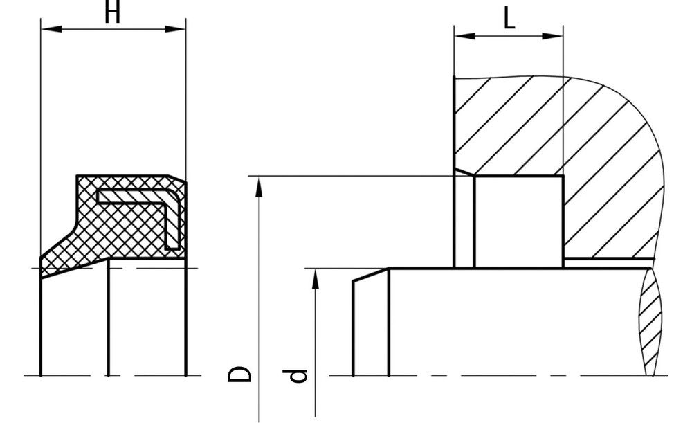 Abstreifer der Bauform AM 45 können in einen axial zugänglichen Einbauraum montiert werden. Der Vorzug liegt in der einfacheren konstruktiven Gestaltung des Einbauraumes und einer bequemen Montage, besonders bei kleineren Durchmessern. Bitte beachten Sie, dass die Einbauräume mit einer leichten Einführfase versehen werden.