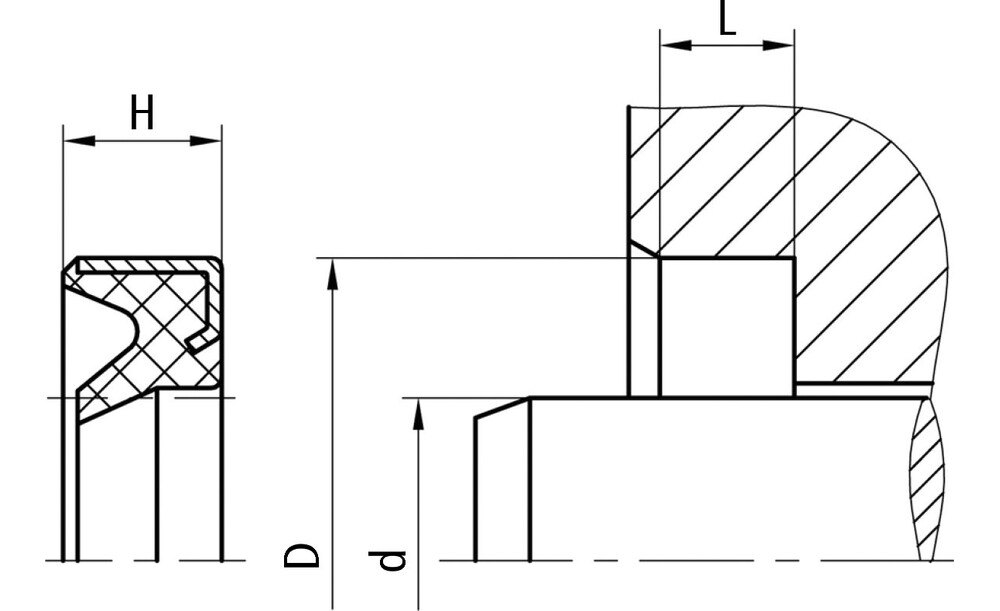 Abstreifer der Bauform AM 54 können in einen axial zugänglichen Einbauraum montiert werden. Der Vorzug liegt in der einfacheren konstruktiven Gestaltung des Einbauraumes und einer bequemen Montage, besonders bei kleineren Durchmessern. Bitte beachten Sie, dass die Einbauräume mit einer leichten Einführfase versehen werden.