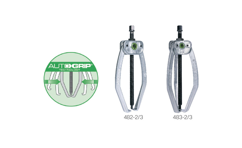 - komfortables zwei- und dreiarmiges Abzieherkonzept mit automatischer Selbstspannung