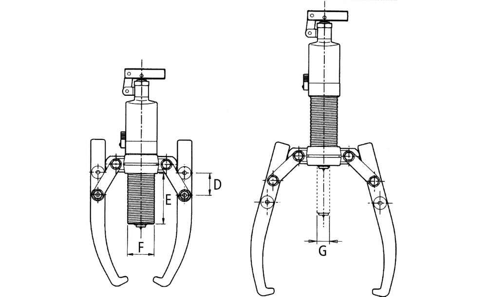 Zwei- oder dreiarmige Abzieher-Kombination mit integrierter Pump-/Zylindereinheit