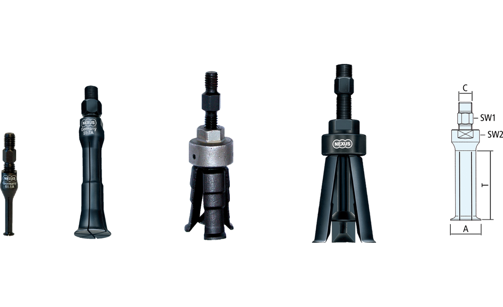 Innen-Abzieher benötigen als Ausziehgerät passende Gegenstützen oder Schlagauszieher.