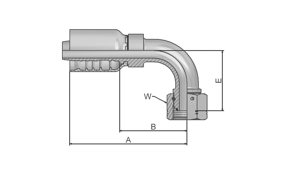 Dichtkopf mit BSP ÜM mit O-Ring - 90° Bogen (60° Konus) Form DKOR 90° DN16 St vz