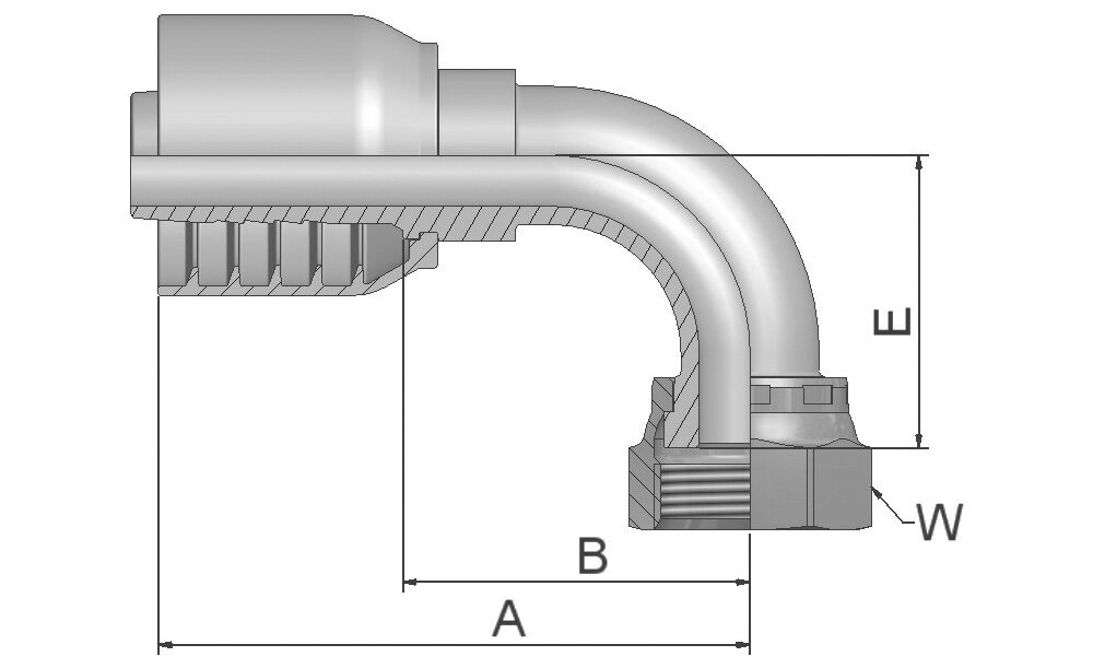- Beschreibung AnschlusstypORFS mit Überwurfmutter - 90° Bogen