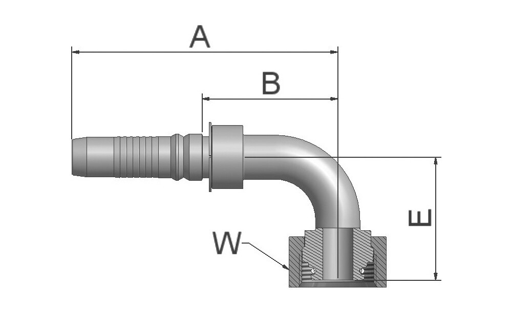 • Beschreibung AnschlusstypDichtkegel mit Überwurfmutter - O-Ring - Schwere Reihe - 90° Bogen