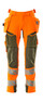 Fluoreszierend mit Reflexen. Hat ein wasserabweisendes Finish. Zweifarbig. Vier-Wege-Stretchstoff mit geringem Gewicht und guter Strapazierfähigkeit. Zweifache Kappnähte an den Beinen und im Schritt. Niedrige Taille. Verdeckter Knopfverschluss. Hosenbeine sind ergonomisch geformt. Abnehmbare Hängetaschen. Innere Hängetasche mit Druckknopfverschluss. Hängetasche mit gefütterter Handytasche undMagnetverschluss. Hängetaschen mit Kevlar® und CORDURA®-Gewebe Verstärkungen. Gürtelschlaufen. Werkzeugschlaufen an beiden Seiten des Bundes. Hosenschlitz mit Reißverschluss. Vordertaschen. Gesäßtaschen, verstärkt und mit Patte. Beidseitig verdeckte Hammerschlaufen. Knopf (abnehmbar) zum Befestigen eines Messerhalters. Zollstocktasche mit Kevlar®-Verstärkungen. Taschen mit Patte vorne am Oberschenkel. Knietaschen aus CORDURA® Zwei-Wege-Stretchstoff mit Belüftung. Einfache, individuelle Regulierung der Knietaschenhöhe. Schenkeltasche mit gefütterter Handytasche, Magnetverschluss und integriertem ID-Kartenhalter. ID-Kartenhalter ist abnehmbar. Senkrechter Reißverschluss für Belüftung am Oberschenkel hinten. Mit Druckeffekten. Die Schrittlänge kann um 3 cm verlängert werden, indem die rote Naht innen am Beinabschluss entfernt wird. Wir empfehlen den MASCOT® Waterloo, MASCOT® Grant, MASCOT® Likasi und 20118-915 Knieschutz zu diesem Modell. Hi-Vis Gruppe Y. Zertifiziert nach EN ISO 20471 - Kl. 2. Das Produkt ist zertifiziert, dass dieses mit einem Logo von 0,0500 m² versehen werden darf. Dieses zulässige Areal darf nicht überschritten werden. Das Logo auf der Vorder- und Rückseite darf jeweils maximal 50% des gesamten Logoareals betragen, um die Zertifizierung gemäß EN ISO 20471 beizubehalten.