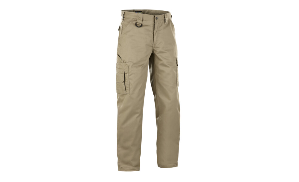 Bundhose Profil Khaki, 65% polyester, 35% cotton, twill 240 g/m2, Khaki, Drei Seitentaschen, eine mit Reißverschluss. Gesäßtasche mit Klettverschluss. Zwei Beintaschen, Handytasche. Zollstocktasche. Schlüsselschlaufe.