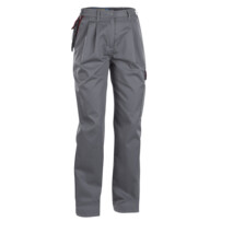 Damen Bundhose Grau/Weinrot, 65% polyester, 35% cotton, twill 240 g/m2, Grau/Weinrot, Formstabil. Bundfalten. Zwei Seitentaschen. Gesäßtasche mit Balg. Patten in Kontrastfarbe. Beintasche mit Balg. Zollstocktasche. Integrierte Handytasche. Ausweistasche.